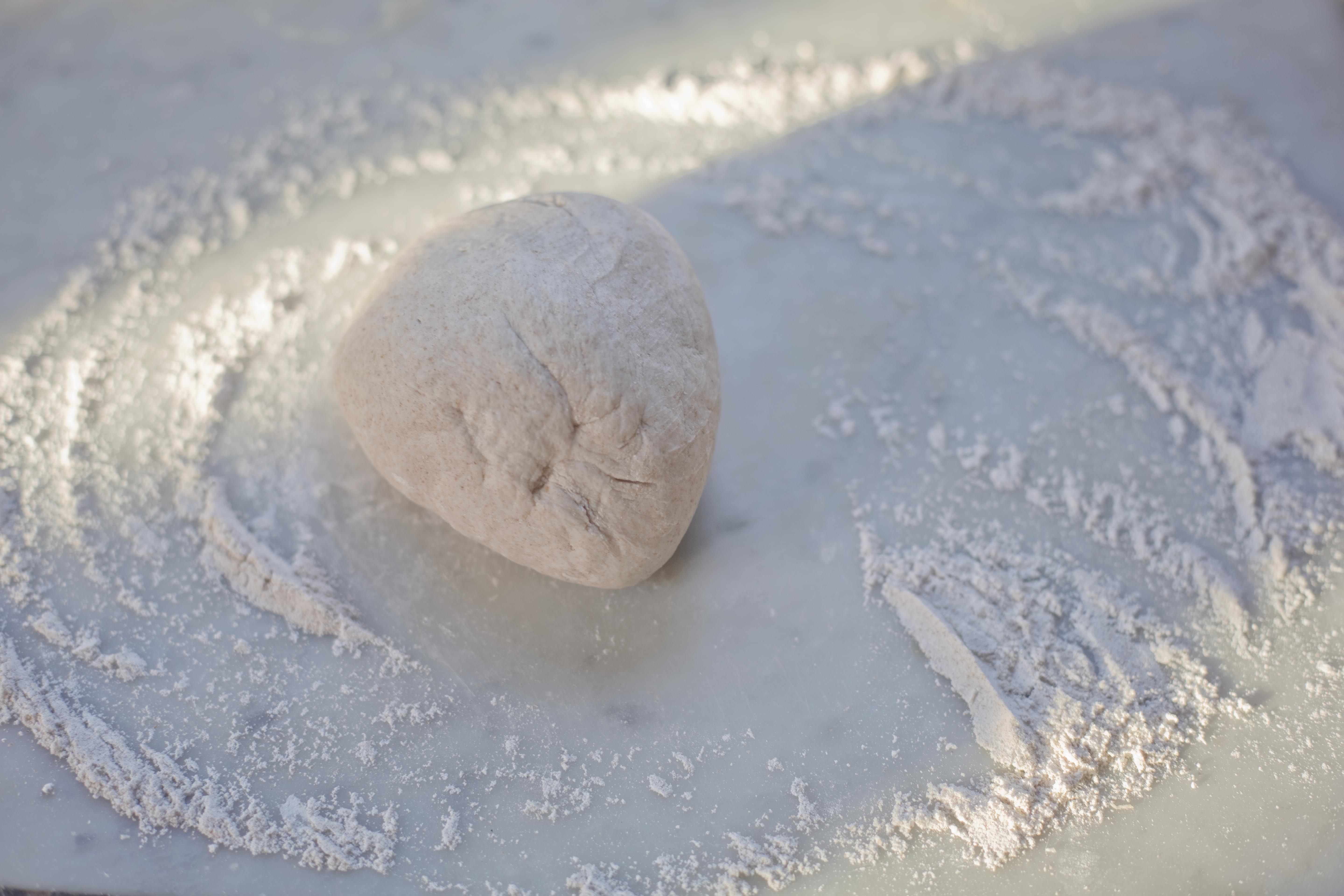 50ml of water until the dough hangs together. Sprinkle a little flour onto a work surface and turn out the dough.
