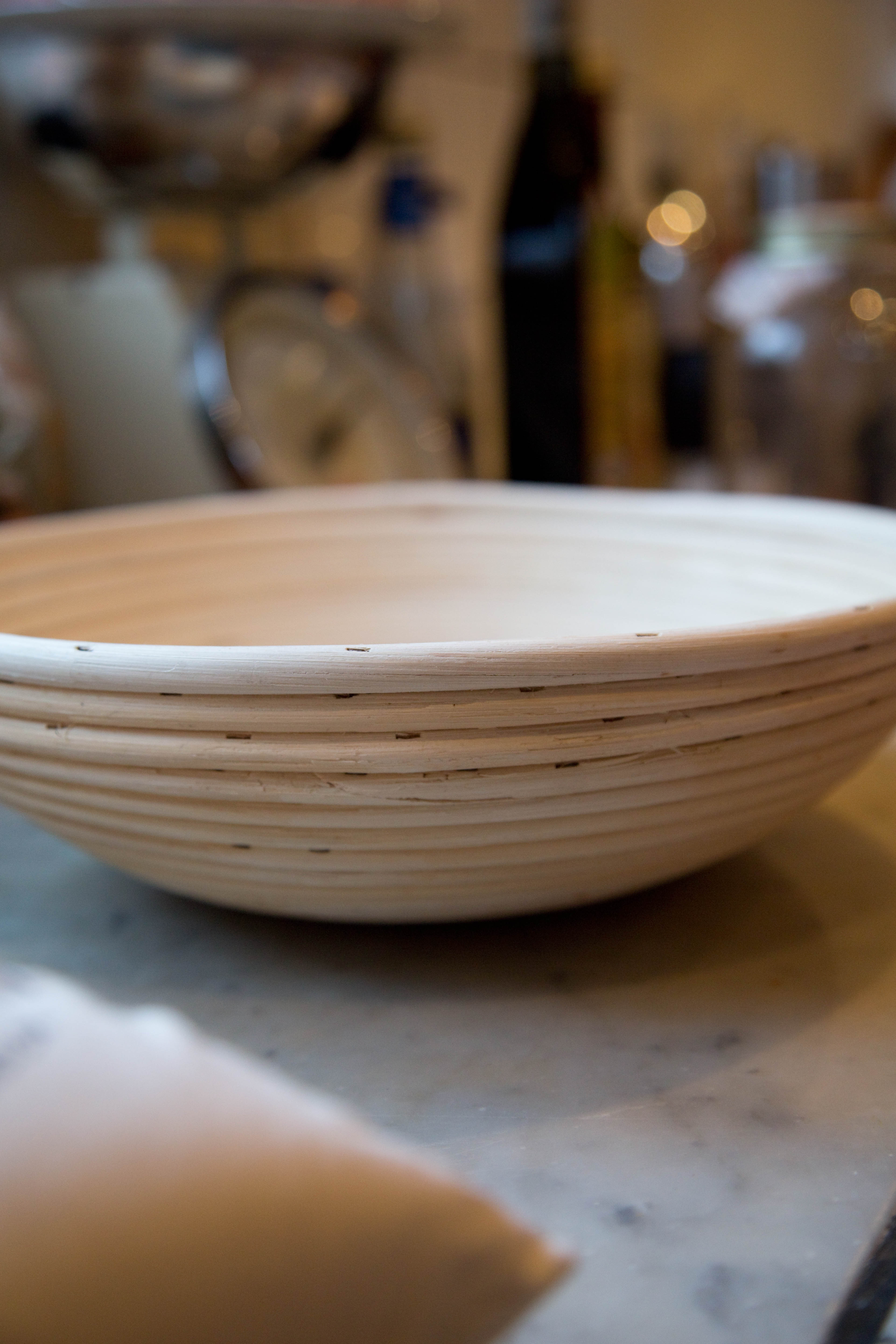 Place the dough ball into the basket and firmly press down, to create the pattern. Leave to rise in the fridge, or a place of similar temperature for 4-6 hours.
