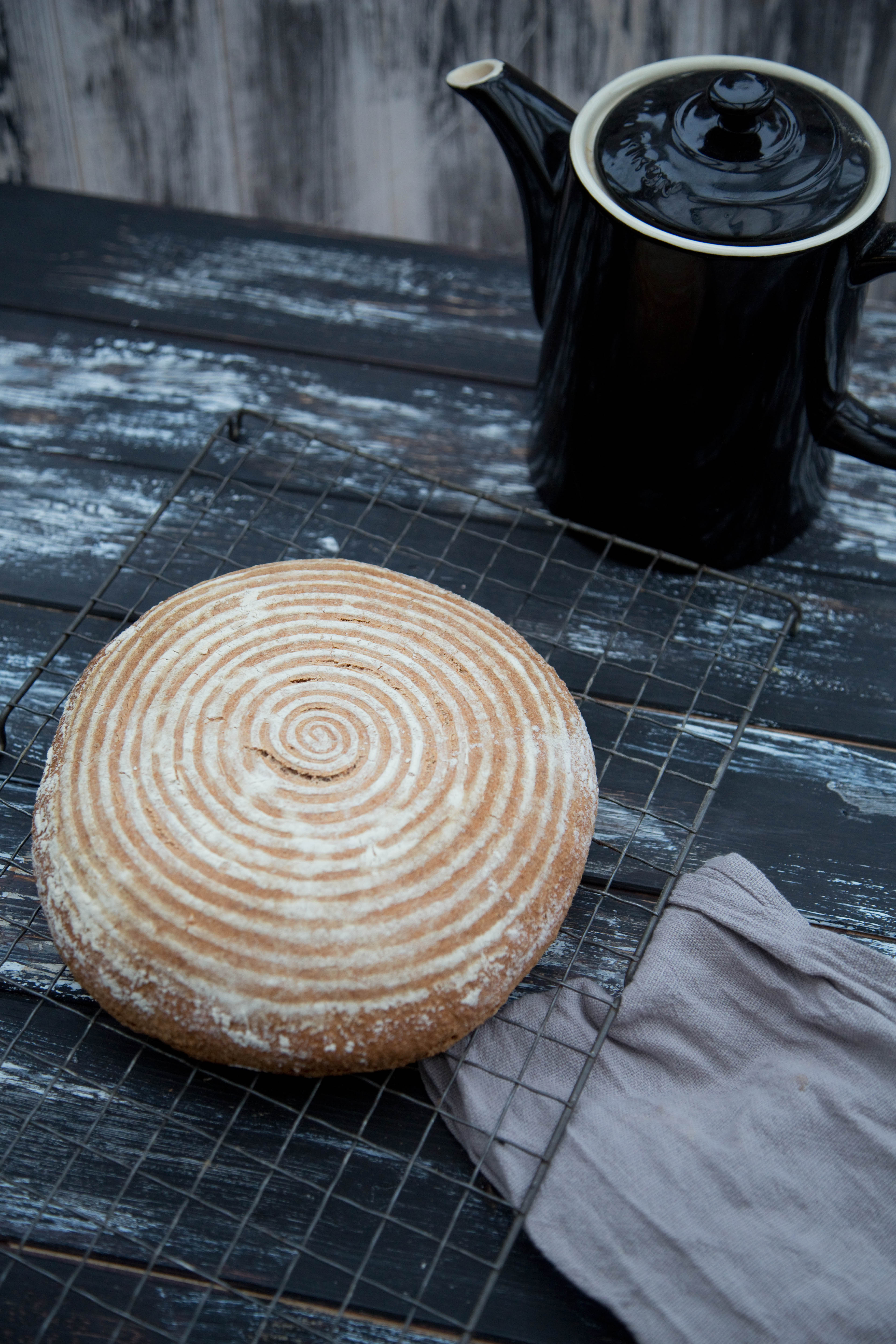 This year for my birthday I received a beautiful artisan rising basket, and a kilo of small batch milled spelt. The basket is made out of one long piece of wicker that is coiled together to make a round bowl shape. After preparing the dough, it is put into the basket for a slow rise of 6 hours. And just like magic, when you turn out the dough and stick it in the oven, it keeps the lovely pattern from the rising basket. Not only does it look fantastically impressive, it tastes amazing too!