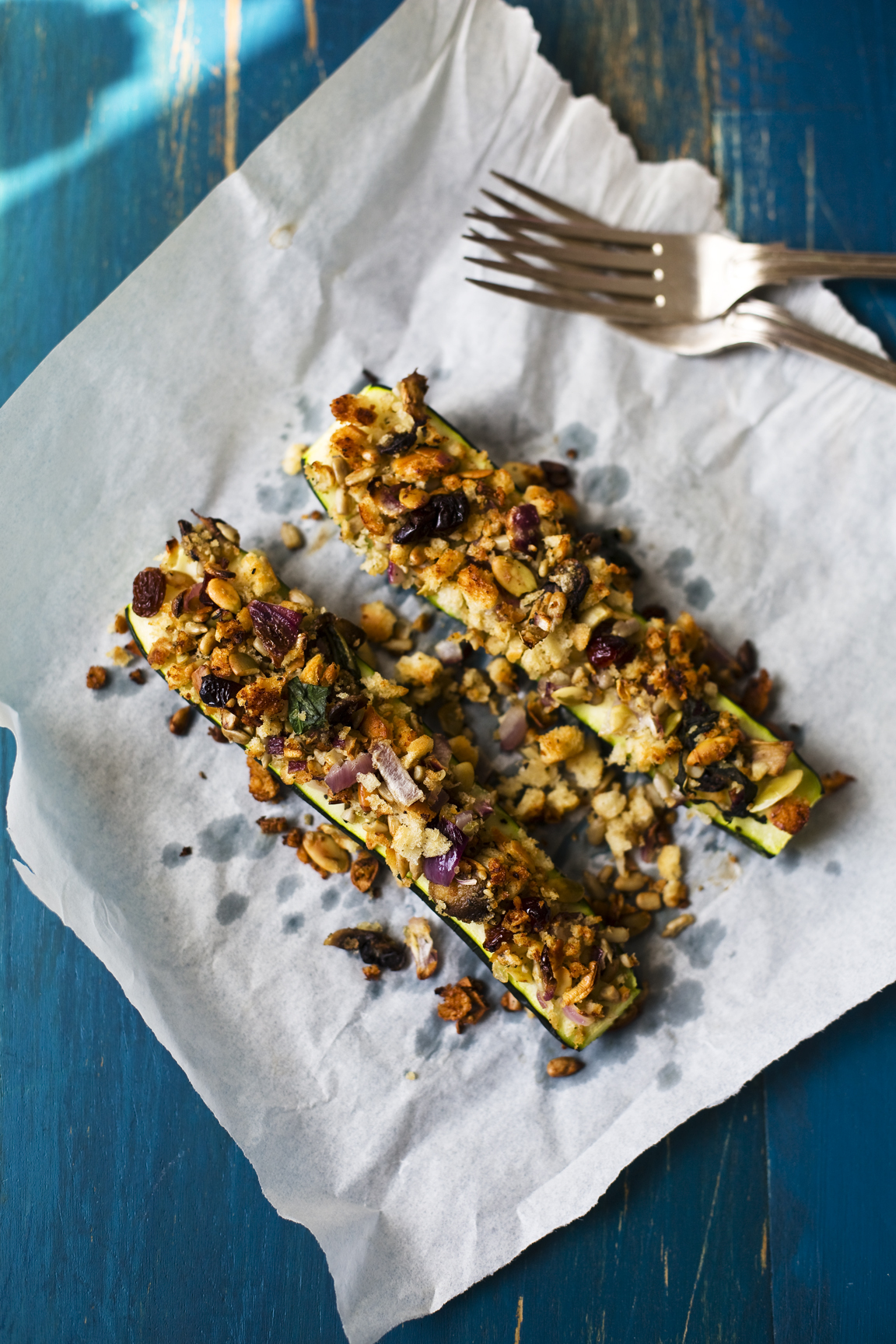 Baked Courgette with Mushroom, Sage and Pumpkin Seed Stuffing