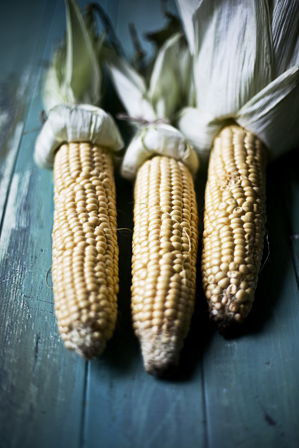 Vi har været så heldige med september vejret her i Skotland i år, at vi endnu kan nyde nogle lune sensommer aftner. Så da jeg faldt over hele majskolber med blade, i min lokale gårdbutik, måtte jeg straks hjem og putte dem på grillen.
