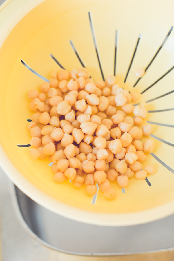 Drain the chickpeas, and pop them into a large mixing bowl.