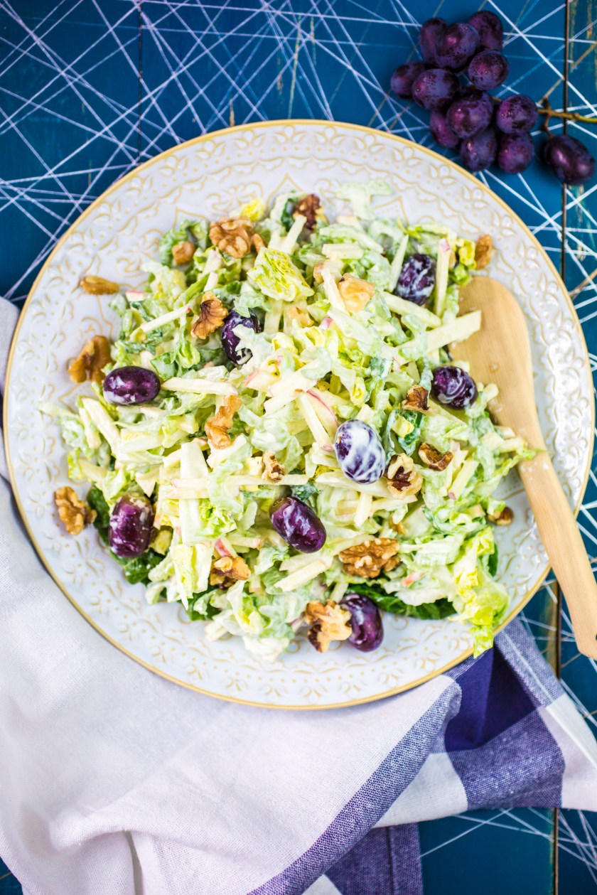 A vegan recipe for waldorf salad using a plant-based yogurt
